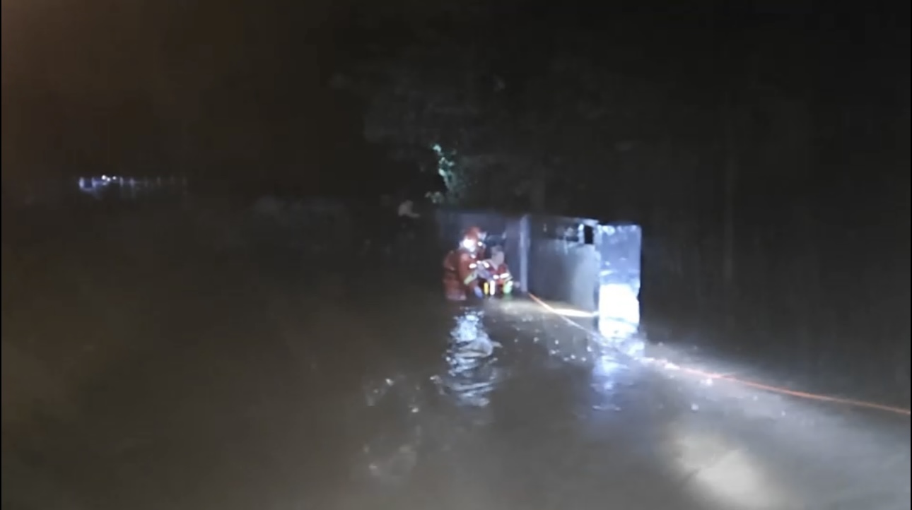 深夜暴雨中三人被困 淄博消防利用绳索和救生圈紧急营救