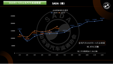 7月23日,山东省汽车流通协会发布2025年上半年汽车市场数据。数据显示,全省家用汽车销量达85.9万辆,同比增长25.1%。其中,新能源汽车销售表现尤为亮眼,达到50.3%,销量为43.3万辆,同比大幅增长43.6%,渗透率超过50%,标志着新能源汽车已成为我省汽车消费市场的主导力量。