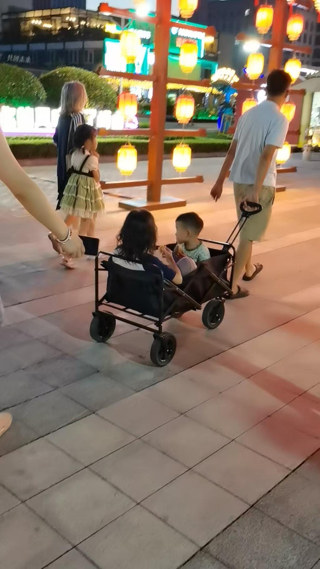 啤酒城里,随处可见儿童车,孩子们坐在车里,被大人推着、拉着,好奇打量啤酒城里的一切。用婴儿背带的也不少,孩子坐在大人怀里的腰凳上,大瞪着眼睛四处张望。