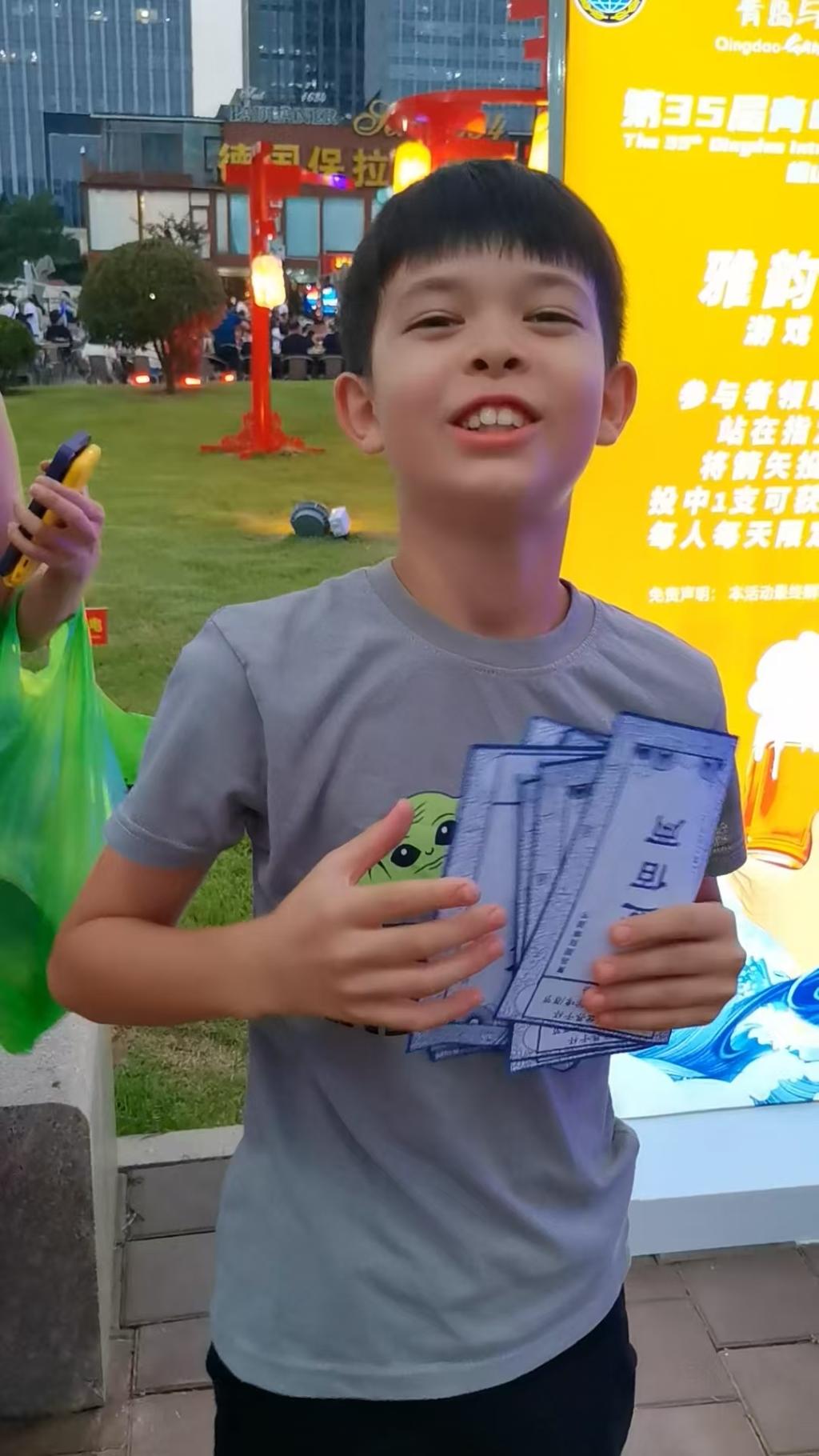 在世纪广场啤酒城里,你会看到很多奔跑的孩子手里拿着一沓“银票”,那可都是通过一个个游戏挣来的。