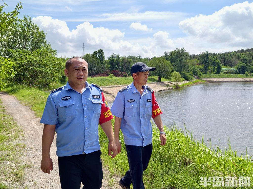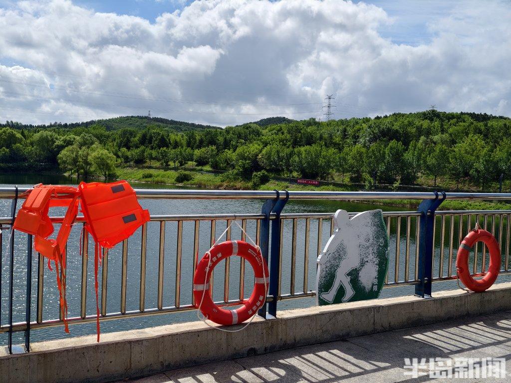 23日上午,记者在城阳区城阳街道东旺疃社区辖区内的四清水库周围看到,水库周边都立起铁丝网护栏,由东旺疃社区和白云山学校设置的“水深危险,严禁下水游泳”“预防溺水,从我做起”等字样的警示牌、横幅等,特别醒目;铁丝网上还悬挂着救生圈、救生衣、打捞杆等,水库周围还有巡逻人员围着水库走动。“我们社区还设置了警示监控系统,有儿童或钓鱼人员到附近的话,预警警报就会响起!”城阳区城阳街道东旺疃社区综合治理部门工作人员焦毓祥边说边向记者演示警报的效果,他告诉记者水库周围共设置了26个探头警报,水库值班人员24小时值守,每天社区民警上下午各一次巡查,守护水库边上的安全。据悉,东旺疃社区辖区还有西山、顶柱桥、蛤蟆桥等水库,也都进行严格的防控,社区还通过业主群、宣传栏、防溺水安全讲座等,做好安全宣传,把好防控关。