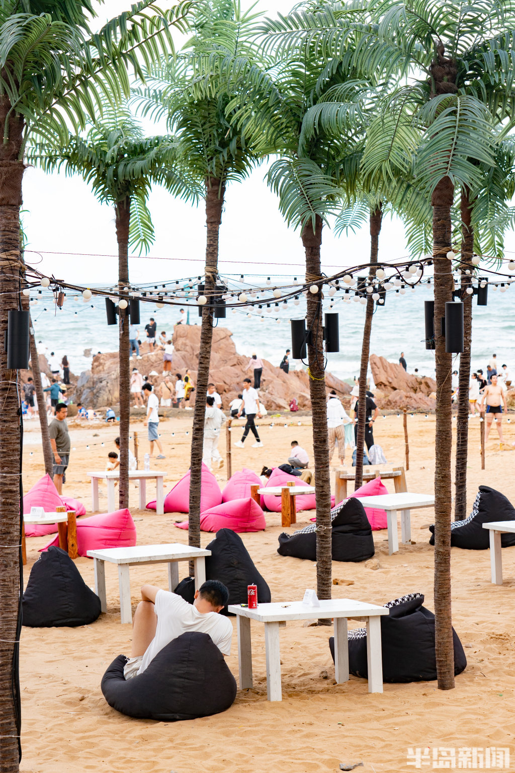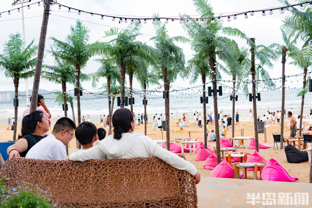 “我们想在啤酒城里打造一个‘慢角落’。”M&Z Beach Club店长袁天泽指着酒吧主区域向记者介绍,升级后的空间以夏威夷海滩为灵感,以热带风情椰树点缀、配套粉色露营座椅,共同构建了梦幻又惬意的休闲一隅。“我们希望通过高质感的环境搭建,激活大众社交打卡需求,让游客在椰林光影里,把脚步放慢,感受滨海夜色里的松弛感。”袁天泽说。