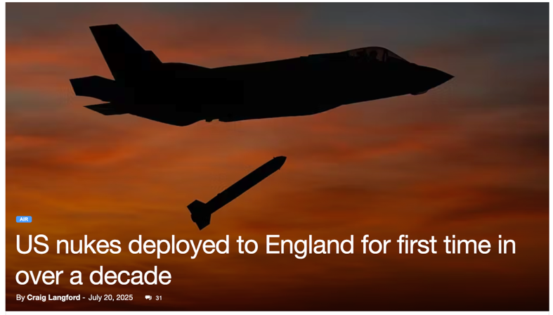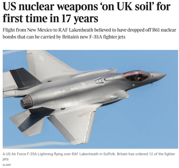 △《泰晤士报》报道:美国核武17年来首次登陆英国领土。