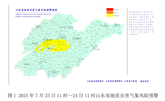 根据未来24小时降雨预报及前期实际降雨量分析,济南市南部、淄博市南部、潍坊市西部、泰安市中北部降雨引发地质灾害的可能性较高(黄色预警),请当地政府及相关单位做好地质灾害隐患点和风险区巡查监测,落实“三个紧急撤离”等防范措施。