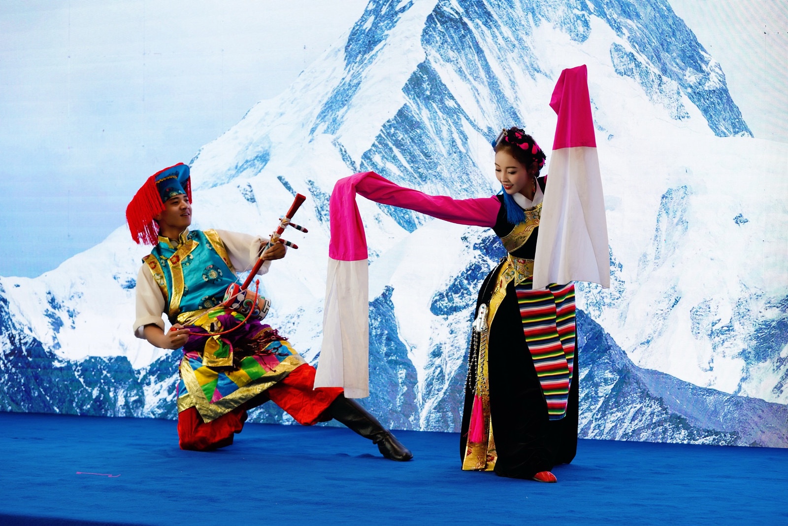 当天,在威海湾畔的城市新地标至海港湾,活动从一首《巴塘弦子》的弦音与歌声中拉开帷幕,舞者们灵动的身姿,歌、弦、舞的韵律之美,展现出国家级非物质文化遗产和甘孜州文化艺术千年传承的独特魅力。