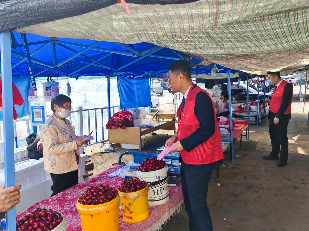 为改变传统种植模式,张昊引入大棚,稳定樱桃生长环境。泗水农商银行了解到这一情况后,立即为其办理了60万元贷款,保证了樱桃如期上市。针对采摘黄金期,泗水农商银行创新服务模式,拍摄短视频,通过“农商甄选”视频号线上宣传活动,帮助客户做线上业务推广,拓宽樱桃园体验客户。同时,组建“党员志愿服务队”,把金融服务帐篷搭在园区门口,携带移动智慧柜员机、聚合支付收款码、POS机等各类结算工具,现场为购销商、农户开立账户、收款码,提供特色农业购销结算服务。不到20天的时间,结算金额达3200万元。