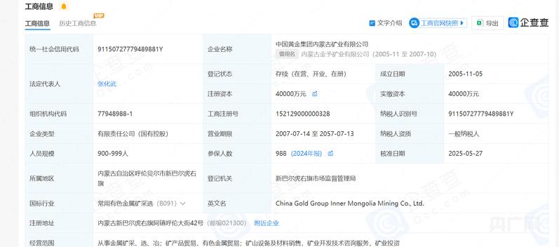 中金内蒙古矿业企业信息(央广网发 图源企查查)
