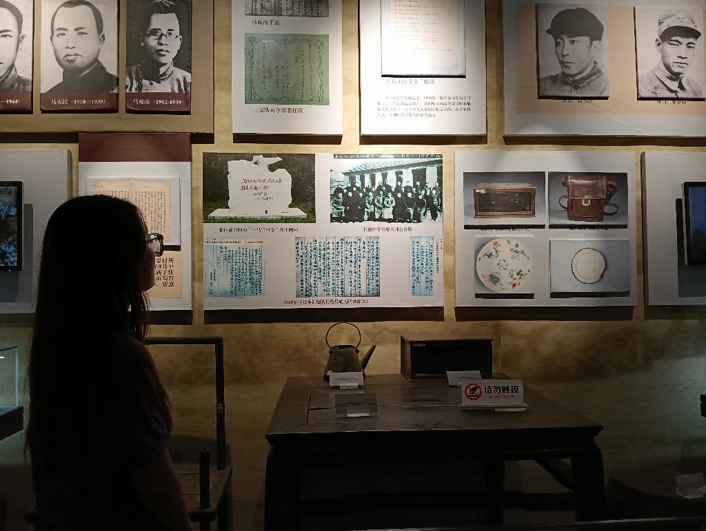 实践团成员驻足阅读抗日史料。 吴悠 供图