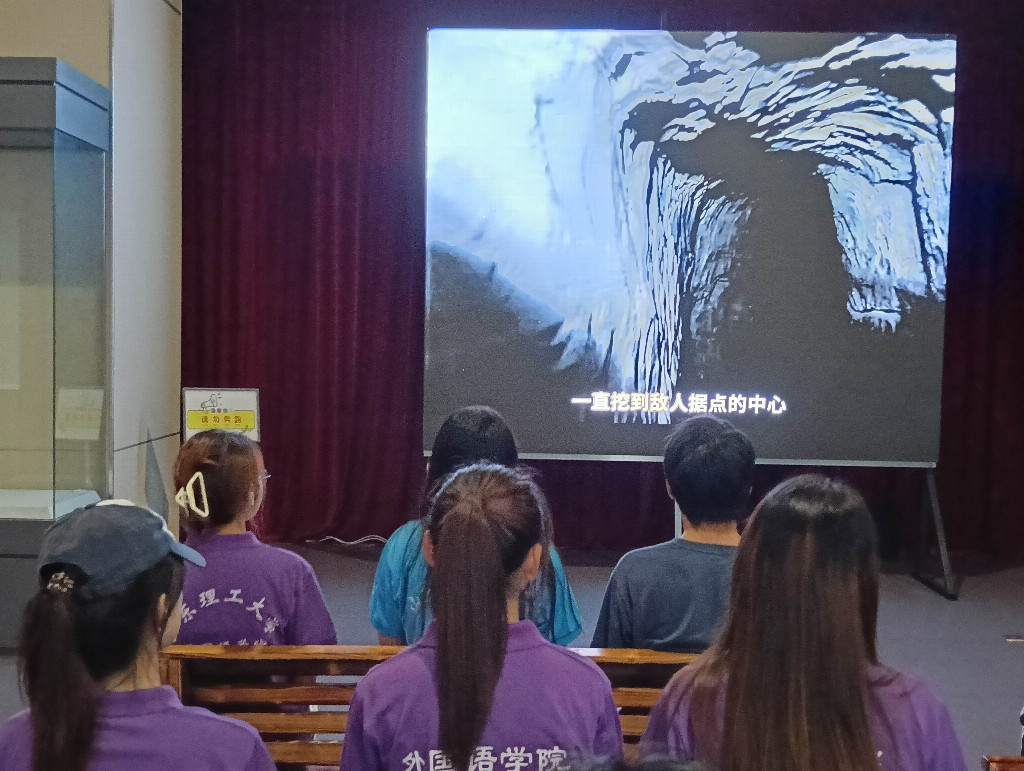 在影像资料区,队员们观看了珍贵的历史纪录片。画面中日军的暴行与抗日军民的英勇反抗形成强烈对比,让大家深受震撼。“看到当年的战斗场景,才真正理解了‘一寸山河一寸血’的含义。” 实践团成员吴同学表示,“这些真实的历史影像比任何教科书都更有教育意义,让青年学子直观感受到革命先辈的牺牲与奉献。”