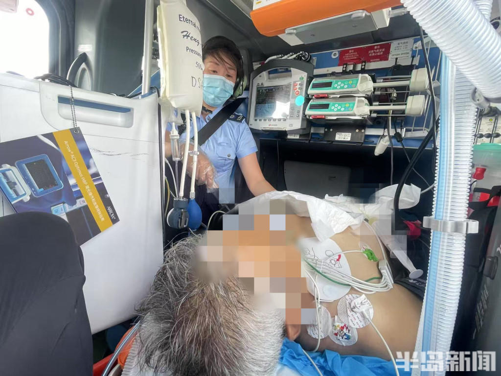 13时02分,直升机准时降落在莱西市临时起降点。医疗团队迅速与地面救护车对接,“持续球囊反搏”“备好除颤电极贴”等专业指令交织,完成高效交接。在仅3平方米的机舱内,呼吸机、除颤监护仪、胸腔按压机等设备严阵以待,医护人员全程紧盯患者生命体征。