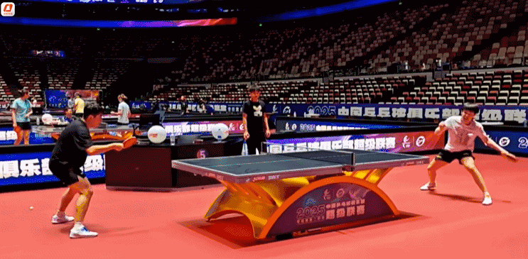 第一阶段,王楚钦领衔的山东魏桥俱乐部六战全胜,领跑男团积分榜。昨天的训练中,王楚钦和梁靖崑主要进行了中远台的攻防训练以适应场地空间感。