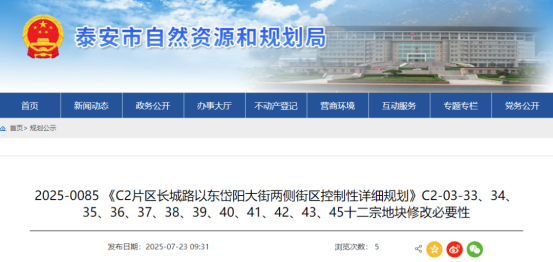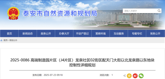 7月23日,泰安市自然资源和规划局发布2则规划公示,具体内容如下: