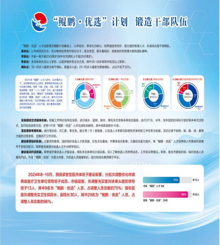 构建人才培养体系。探索实施“鲲鹏”人才培养计划,“好中选优”遴选974名学员,建立“政校医”培养模式,对接滨州医学院设立“鲲鹏人才培养基地”,联合山东第二医科大学设置公共卫生培训项目,组织专家现场授课170余场次,集中闭卷考试5场次,技能操作考核8场次。“优中选强”建立385名“鲲鹏·优选”干部后备梯队,筛选重点培养对象93名,“一人一案”实行清单式管理、差异化培养,相关经验被山东省卫生健康委作为全省医改典型案例进行推广。