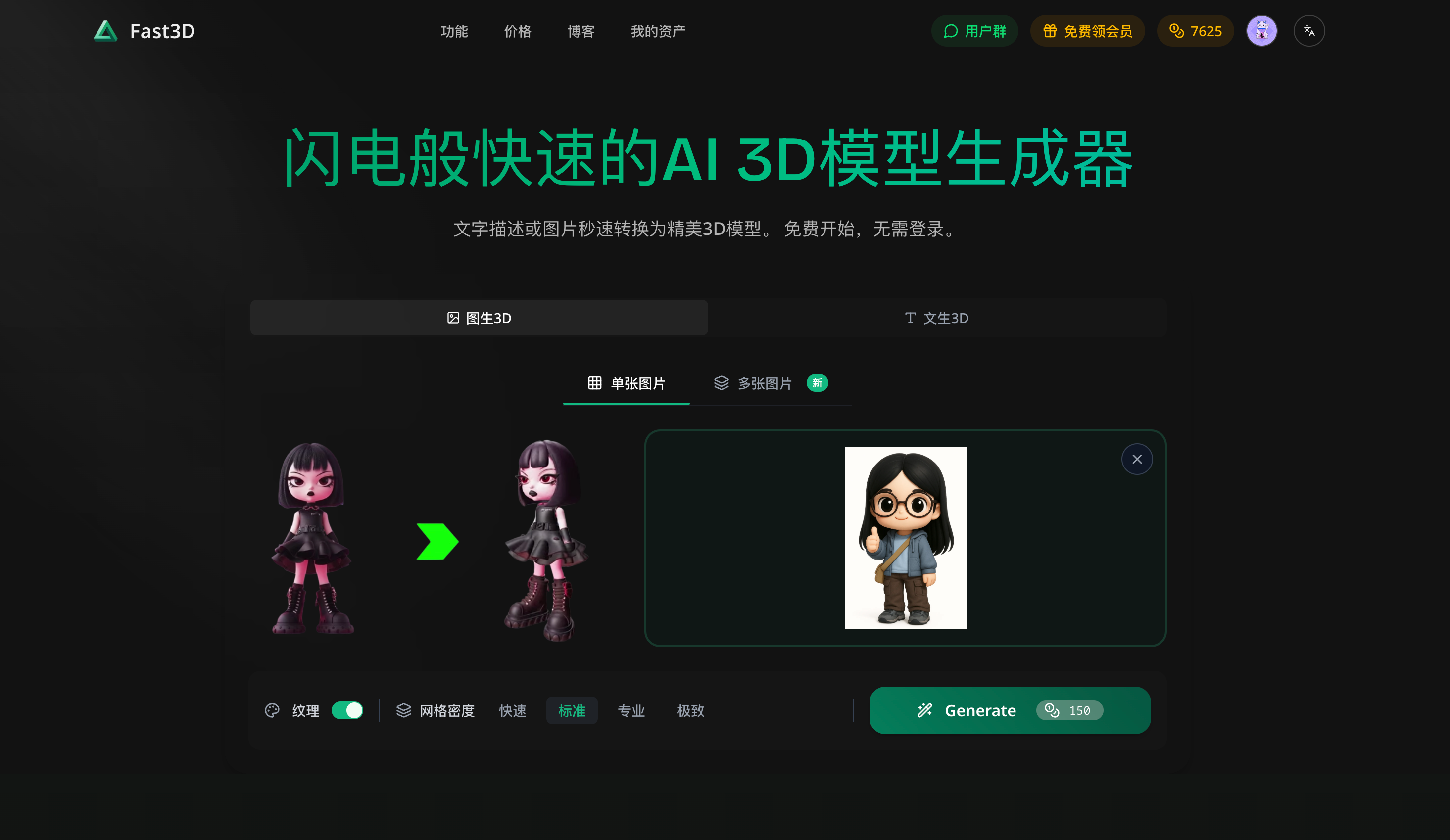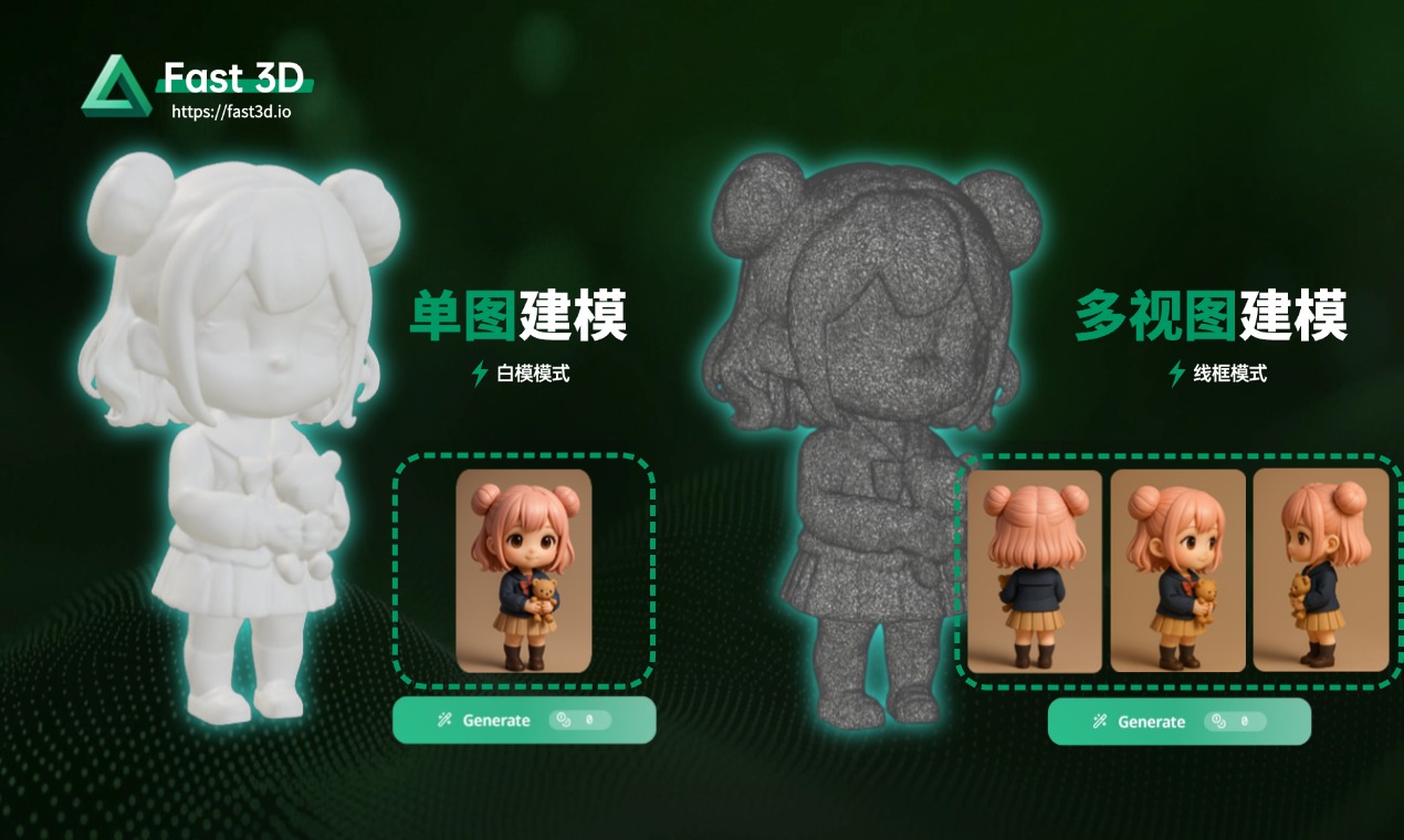 Fast3D.io的出现,彻底改变了这一现状。通过将尖端的AI科研成果进行工程化转化,该平台成功将3D建模的成本降至原始版本的1%,同时将制作时间从"数周"缩短至"8秒"。更为重要的是,Fast3D成为全球唯一一个无需登录即可无限制使用的3D建模平台,真正实现了技术普惠。