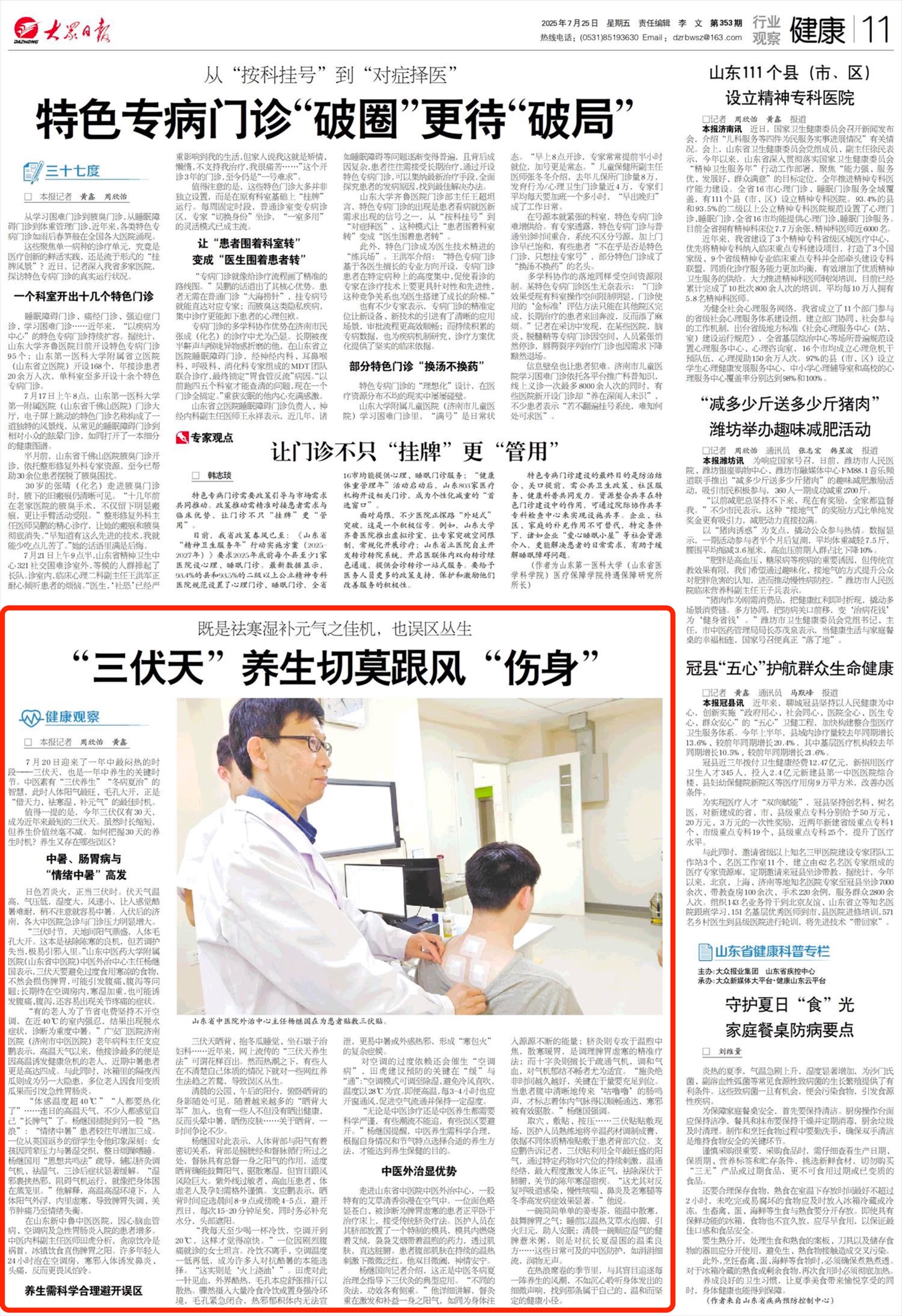 《大众日报》健康版:“三伏天”养生切莫跟风“伤身”