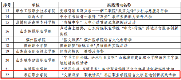枣庄职业学院“文廉双荣·职教清风”项目入选山东省语言文字推广基地创新实践活动重点项目