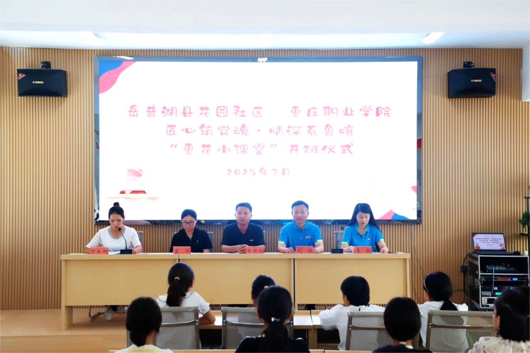7月23日上午,枣庄职业学院和喀什地区岳普湖县花园社区共同举行了“匠心筑党魂·情深系鲁喀——‘枣花小课堂’”开班仪式。岳普湖镇副镇长、花园社区党支部书记,学院学生工作处(团委)负责人、支教志愿者及花园社区的中小学生代表50余人参加了开班仪式。