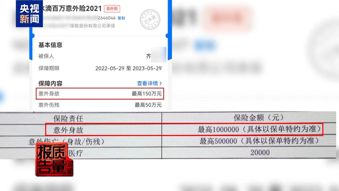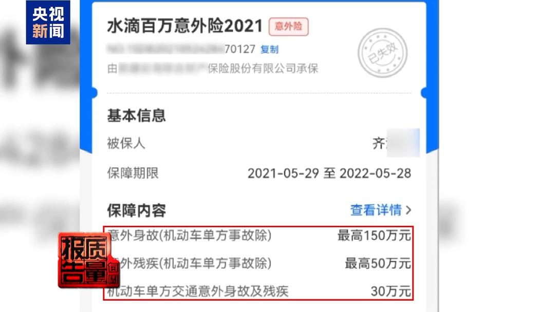 山东九公(济南)律师事务所律师 李勇:2021年的时候,齐先生购买了一份水滴百万意外险,是通过微信小程序购买的,保险保额最高150万。