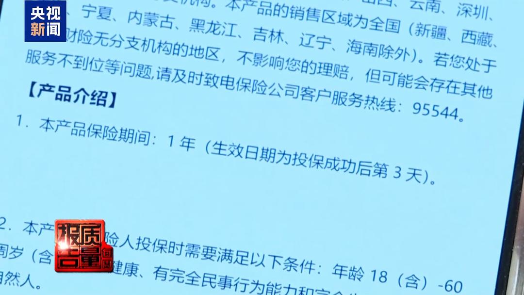 复旦大学保险消费者权益保护研究课题组 要斯磊:这款产品包含意外医疗和猝死责任,但是没有明显标注覆盖医院范围。消费者在下述医院治疗时的费用不进行赔偿,比如说吉林省的全部医院。但是消费者并不可能在销售页面看到,买了以后去医院治疗的时候发现不进行赔偿,应该明显在销售页面把信息披露出来,但是没有做到,所以这个信息披露是不全面的 。