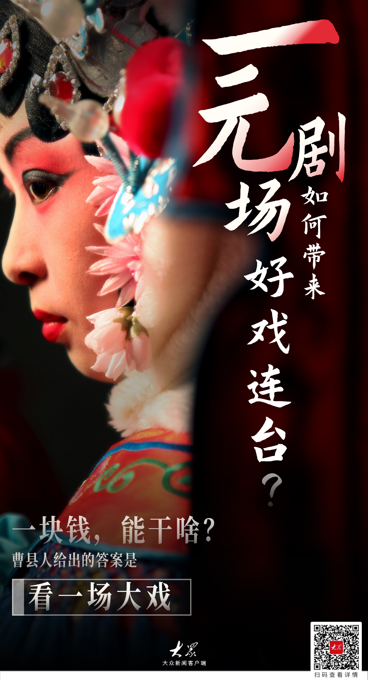 剧院修缮暂停3个月后,7月1日,曹县“一元剧场”再次热闹开演。上演的山东梆子、豫剧传统大戏,让戏迷直呼过瘾。自6年前启动以来,“一元剧场”已经在这个鲁西南小城演出近400场,成为当地一张亮丽的文化名片。“一元剧场”不仅带来了好戏连台,还在当地撬动了一场基层公共文化服务改革。