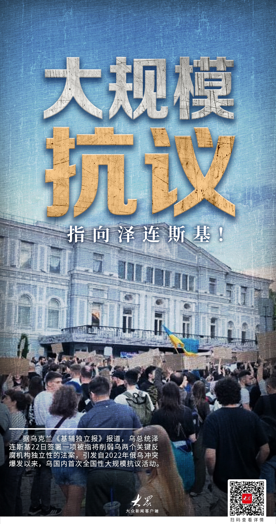 据乌克兰《基辅独立报》报道,乌总统泽连斯基22日签署一项被指将削弱乌两个关键反腐机构独立性的法案,引发自2022年俄乌冲突爆发以来,乌国内首次全国性大规模抗议活动。