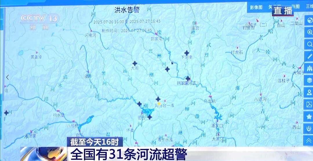 全国31条河流发生超警以上洪水 未来两天部分中小河流可能超警