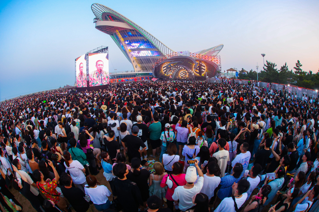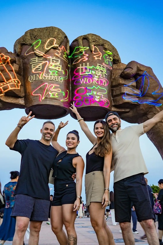 不仅仅是舞台下人头攒动,在金沙滩啤酒城,“青岛与世界干杯”雕塑下也攒动着人影,与空中盘旋的航拍机光影相互交织,脚步不自觉地轻快起来,连风里都裹着“快来!”的雀跃低语。