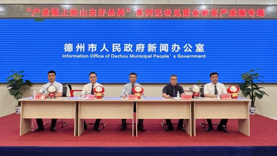 7月25日,德州市政府新闻办在泰山体育产业集团召开“产业链上的山东好品牌”系列首场记者见面会,邀请泰山体育产业集团有限公司总裁卞笑男、山东迈宝赫健身器材有限公司总经理刘新利、山东世纪星文体器材有限公司营销副总任文亮,以及德州市体育局党组成员、副局长常健勇出席,分享德州产业升级和品牌成长故事。