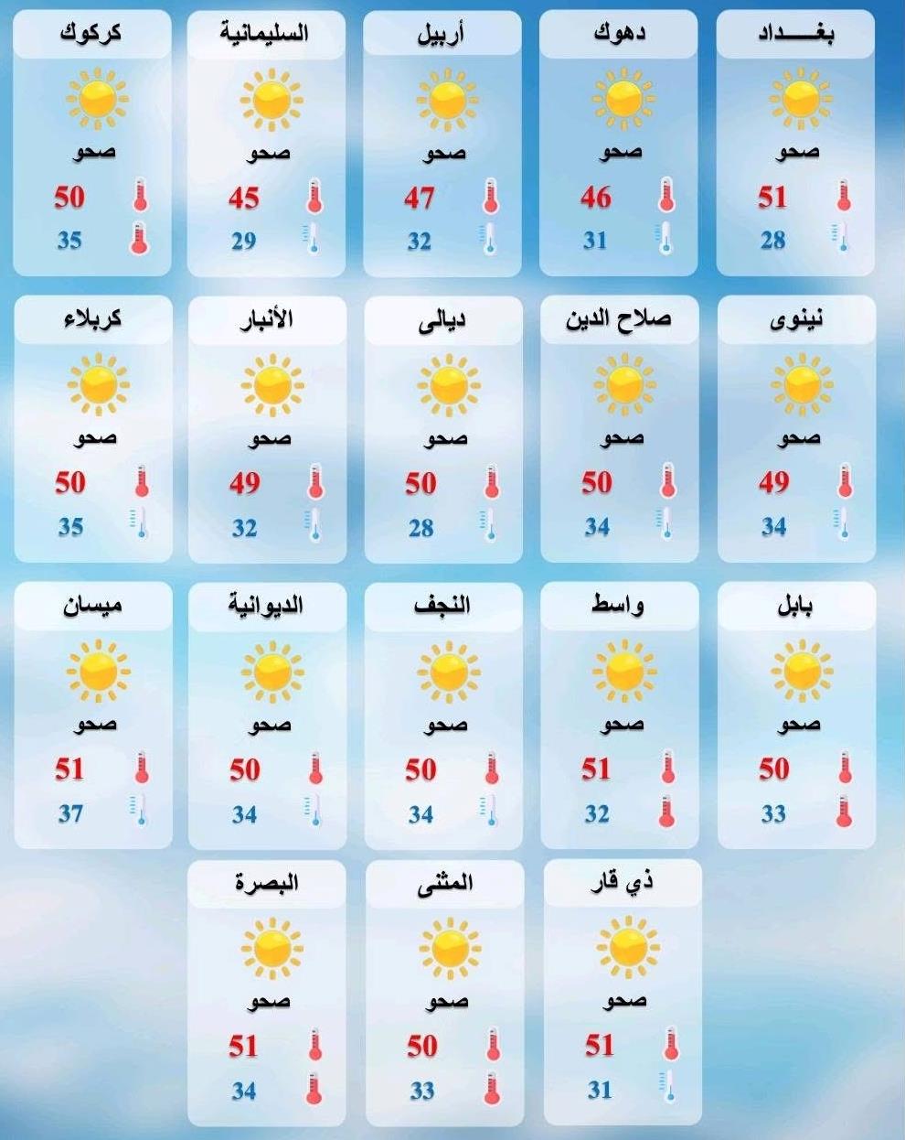 据伊拉克气象部门通报,当地时间7月28日,伊拉克全国18个省份中有13省当天最高气温突破50摄氏度。