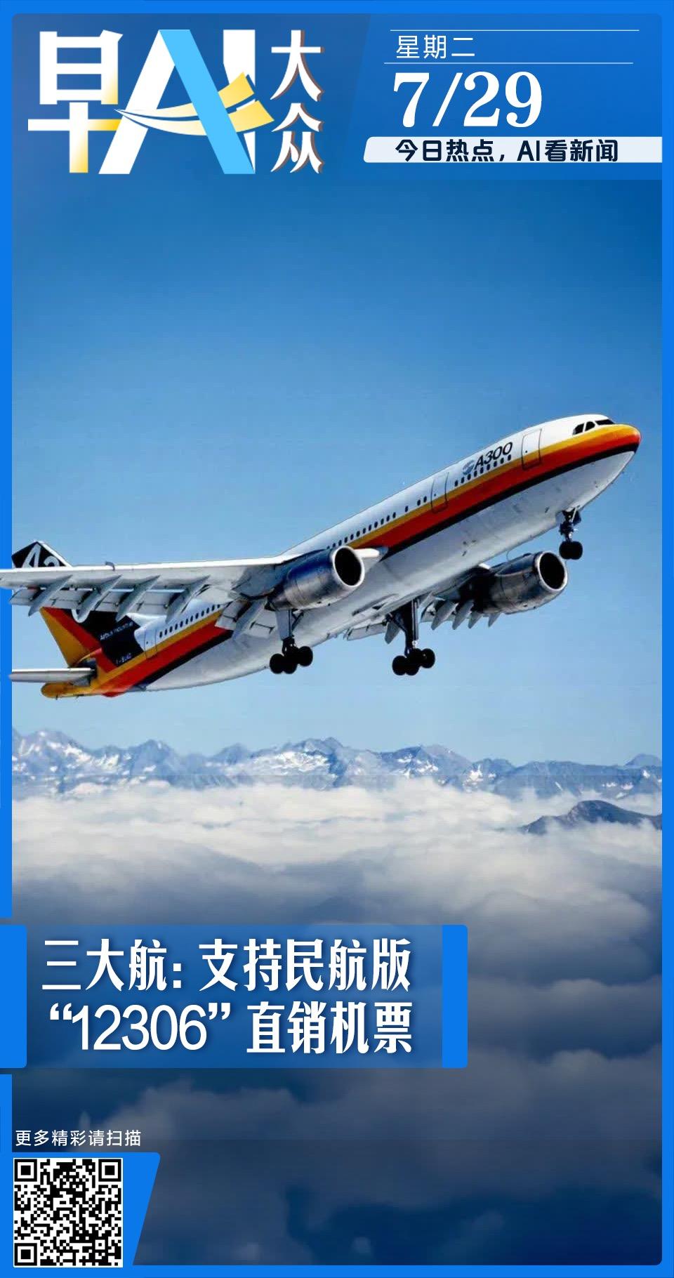 早AI大众|三大航支持民航版“12306”直销机票;泰柬停火协议正式生效