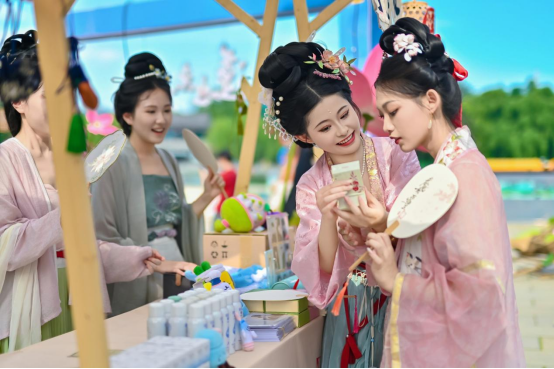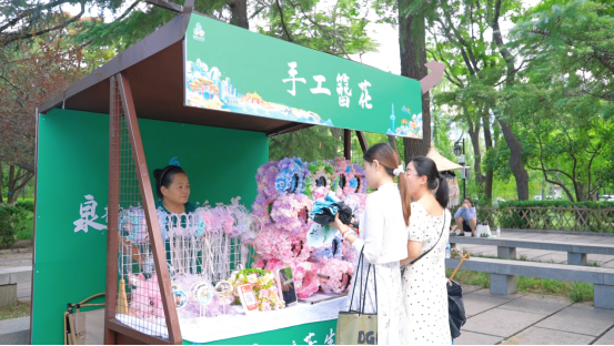 7月26日,济南国际泉水节系列活动之一的泉水市集在大明湖畔盛装登场。超然楼码头广场上,四座清新自然、充满诗情画意的“玻璃房子”吸引了众多游客的好奇。“四面荷花三面柳,一城山色半城湖”,泉水市集以济南“市联”为灵感,融合济南独特景观、光影科技、自然生态与文化元素,创新打造诗意场景,展出护肤界“国货之光”、创意城市文创、传统手工艺品、特色汉方蜜饮等好品好物,还有古装NPC互动、漆扇投壶、对诗赠礼等精彩互动,为市民游客带来创意满满的夏日游园新场景。