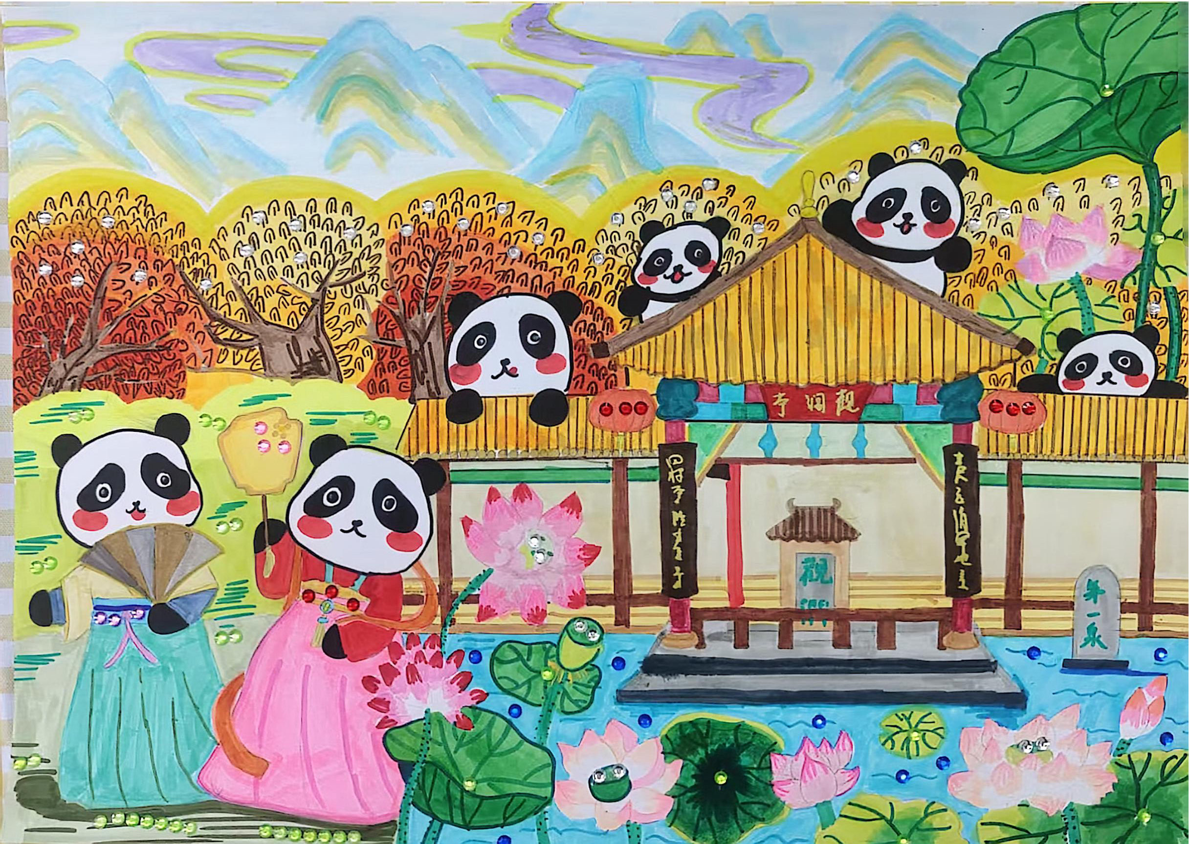 2025青少年云上嘉年华|刘梓茜绘画作品《泉畔熊猫喜乐图》