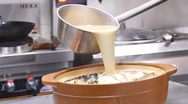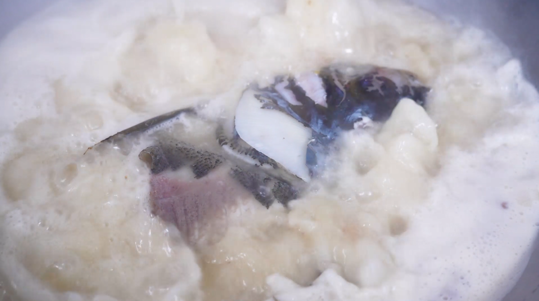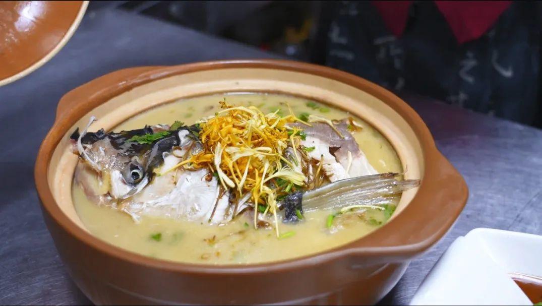 5、放入炸好的鱼头,转文火慢炖 30 分钟,让鱼头的鲜美与汤汁充分融合,炖出醇厚的味道。