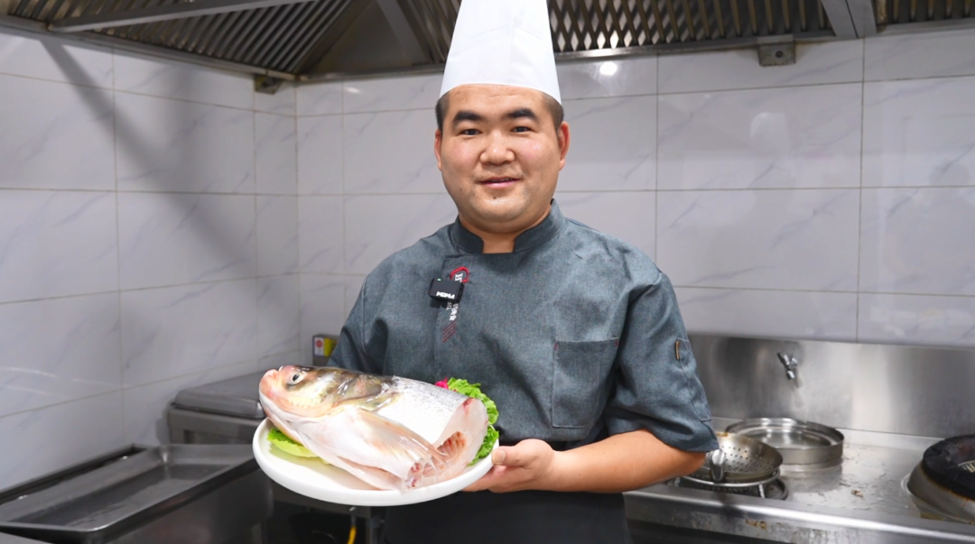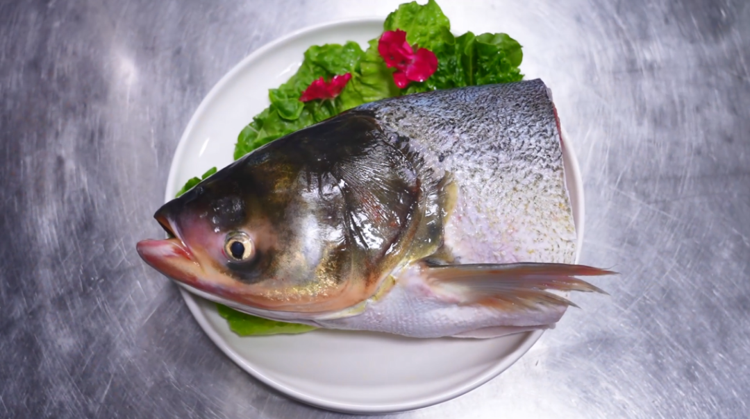 1、先对平邑五龙湖野生大花鲢鱼鱼头进行宰杀清洗,确保鱼头干净无杂质。