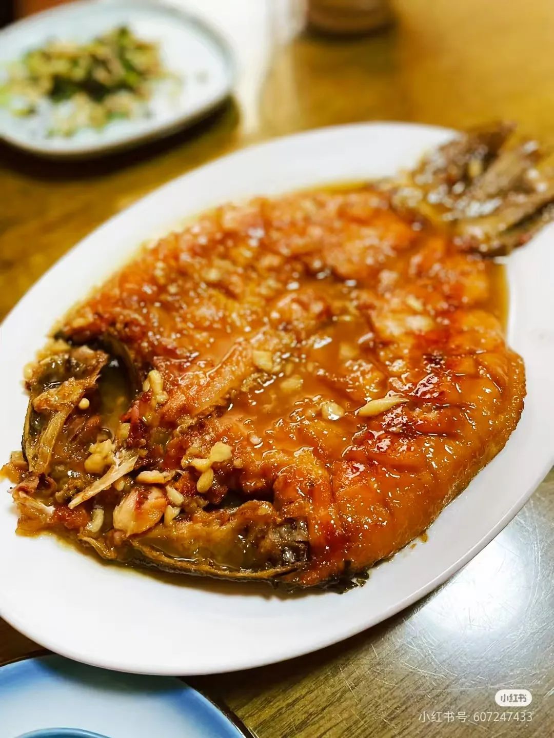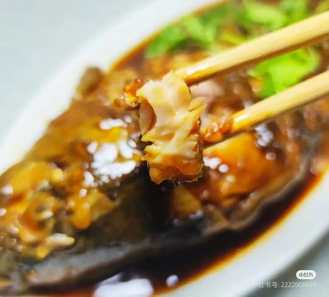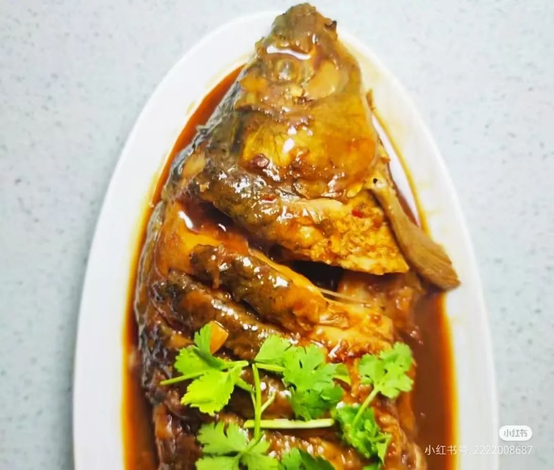 鲤鱼处理后,煎至金黄,加豆瓣酱、糖、酱油等调料炒出酱汁,焖煮至入味。鱼肉吸足酱香,带着河鲜的清甜,鱼皮软糯,每一口都浓香味美。