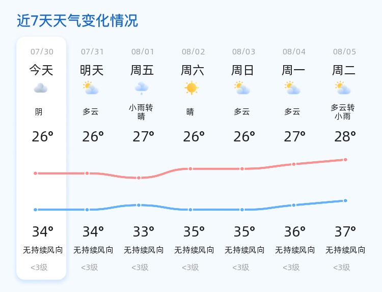 已为您整理了未来7天天气预报,请继续留意未来天气变化,注意出行安全。