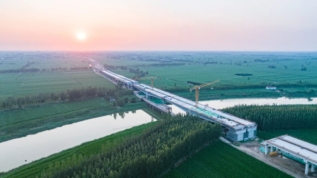 山东高速投资建设的齐临项目徒骇河特大桥主桥全幅贯通