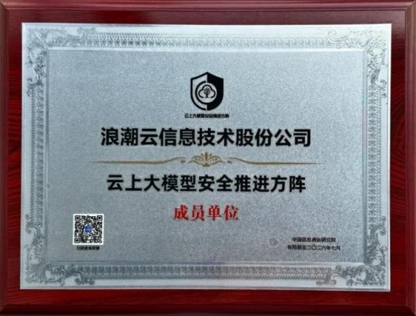 浪潮云入选“云上大模型安全推进方阵”首批成员单位