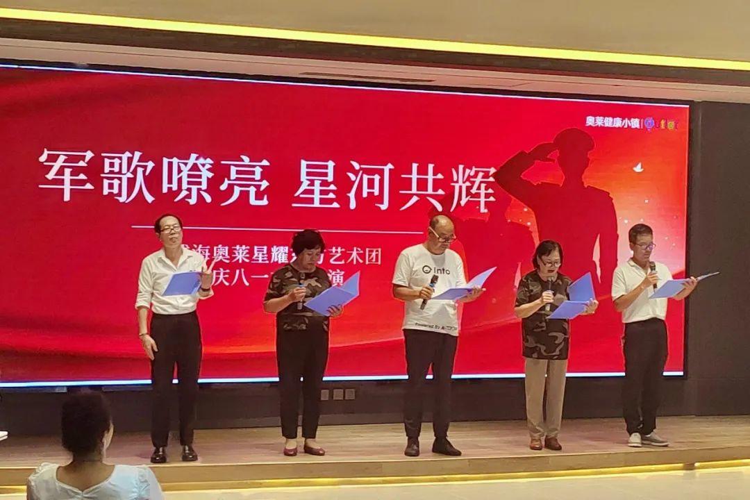 奥莱梦想书坊内,庆“八一”文艺汇演精彩上演。活动在深情悠扬的合唱《大海啊故乡》中拉开帷幕,鼓舞《2025好运来来来》以激昂的鼓点和充满活力的舞姿点燃全场热情,表达对未来的美好祝愿。退役军人演唱的《军人本色》《我把太阳迎进祖国》,歌声铿锵有力,饱含对军旅生涯的深情回忆和对祖国边防的无限忠诚,现场掌声雷动、经久不息。社区小朋友带来的诗朗诵《修身》,童声清脆、字字铿锵,既展现了新时代少年对品德修养的追求,也满含对军人精神的崇敬。“我想用表演表达对军人们的敬意,更要学习他们艰苦奋斗、为国为家的精神。”参加表演的夏潇然说。