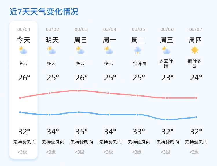 已为您整理了未来7天天气预报,请继续留意未来天气变化,注意出行安全。