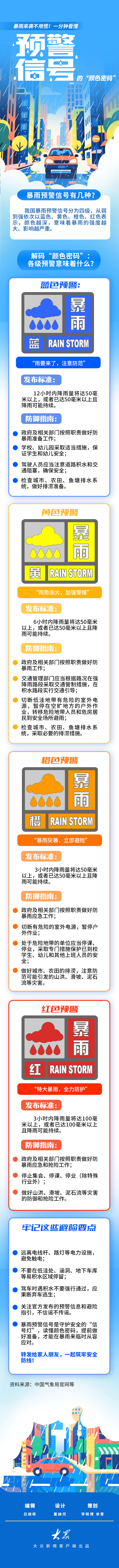 防汛科普长图|暴雨来袭不用慌!一分钟看懂预警信号的“颜色密码”吕继萌 董赫然 来源:大众新闻2025-08-01 18:18:45原创责任编辑:金雪大众新闻原创内容,未经授权不得转载转载事宜请联系大众新媒体大平台 联系电话:0531-85193469