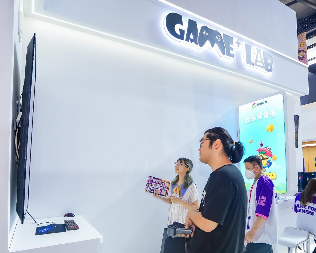 除了游戏产品的展区外,世纪华通 “Game+Lab(游戏+实验室)”带着三项最新应用来到现场,包括帮助开发者创建游戏角色的AI角色编辑器,由人工智能技术打造的休闲游戏《欢乐接金币》,以及实时捕捉玩家脑电波(EEG)数据,为优化游戏体验提供科学依据的脑语评测平台。