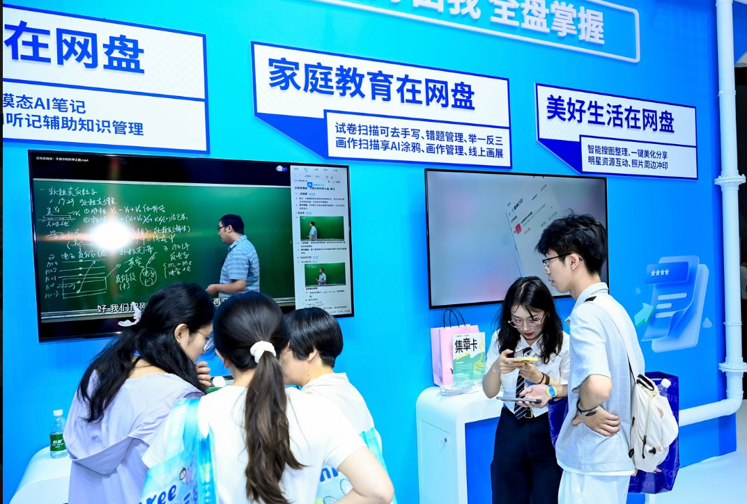 在百度网盘展区,现场工作人员介绍,百度网盘的AI相机功能支持直接拍摄照片、修图美颜后一键存储到网盘。另外还拥有拍照识别、解题、文字提取、翻译、扫描、合同检查等一系列AI功能。