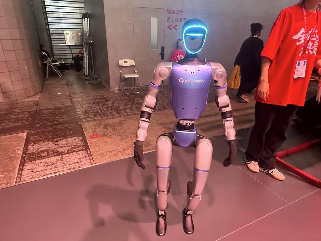 在骁龙主题馆,一台宇树机器人正灵活自由走动。现场人员向《科创板日报》记者介绍,宇树机器人采用了高通的芯片。