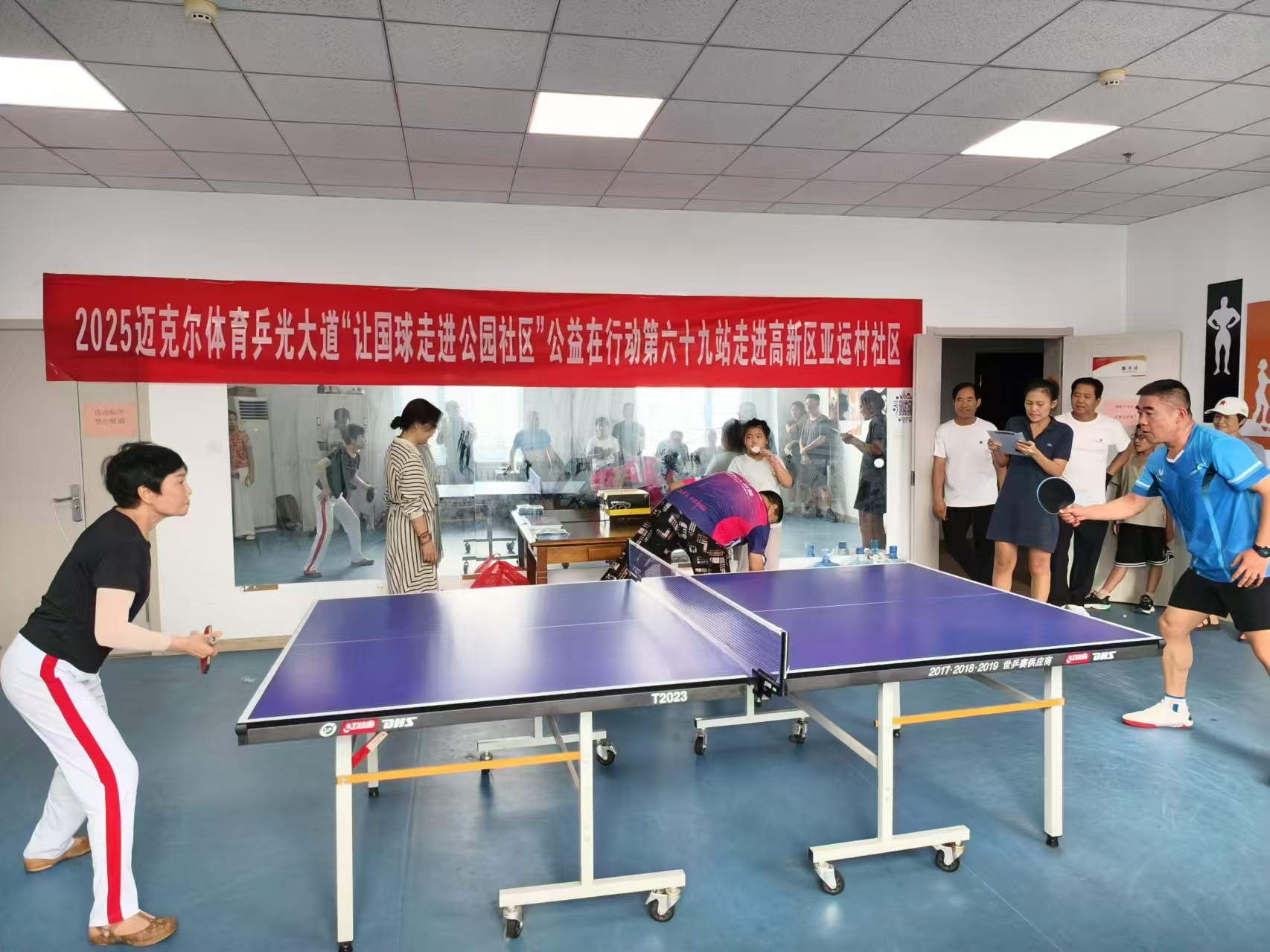 挥洒乒乓热情,活力充满社区,8 月 1 日下午,淄博高新区四宝山街道亚运村社区联合迈克尔体育在社区活动室共同举办“让国球走进社区”公益活动。