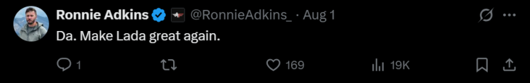 据“今日俄罗斯”(RT)、英国《每日邮报》8月2日报道,美国共和党在社交平台X的官方账号当地时间周四(7月31日)似乎闹了个大乌龙。该账号发布了一则旨在宣传美国汽车工业的帖子,配图海报中却疑似使用一辆苏联拉达汽车作为背景。此举引发不少网友质疑和吐槽。