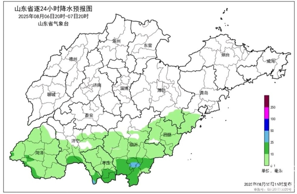 8月5日,记者从山东省气象台了解到,受副高边缘暖湿气流和冷空气共同影响,山东多地出现降雨。省气象台降水数据显示,8月4日6时至5日16时,全省共有15市、79县(区、市)、762乡镇出现降水,平均降水量4.4毫米。山东省气象台5日16时继续发布暴雨蓝色预警。