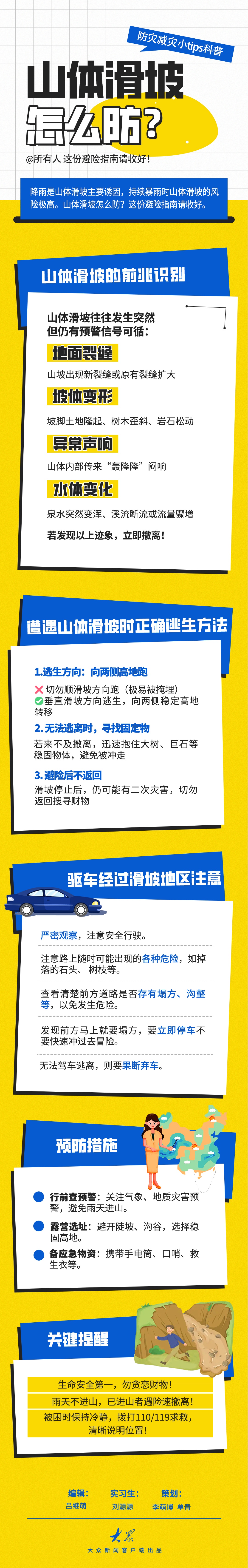 防汛科普长图|山体滑坡怎么防?这份避险指南请收好吕继萌 来源:大众新闻2025-08-06 10:06:58原创责任编辑:叶彤大众新闻原创内容,未经授权不得转载转载事宜请联系大众新媒体大平台 联系电话:0531-85193469