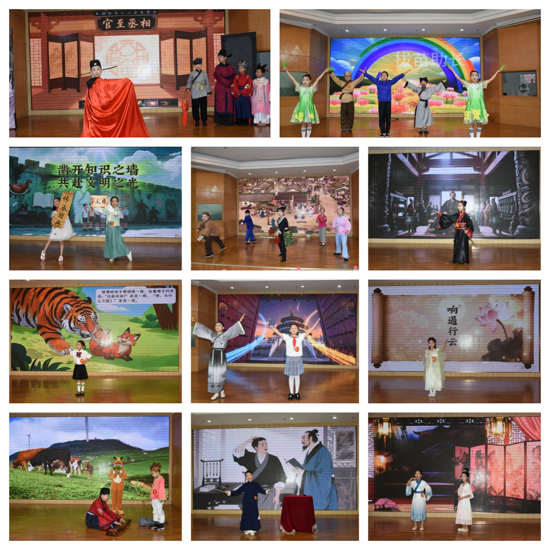 何昭阳带来的《毛遂自荐》,以沉稳的讲述和细腻的表演,将历史人物毛遂的胆识与智慧生动呈现。王研卿、黄礼艺等组合演绎的《负荆请罪》,巧妙地运用情景模拟,将“将相和”的经典场景演绎得感人至深,让观众直观感受到古人知错能改、以和为贵的美德。多个小组分别演绎的《墨守成规》,从不同角度揭示了固守旧法、不知变通的危害,他们通过绘声绘色地讲述,活灵活现地表演,把成语的深刻内涵展现得淋漓尽致。少年们用自己的理解,将成语故事从书本中 “搬” 到舞台上,让古老的文化在新时代的演绎下熠熠生辉。