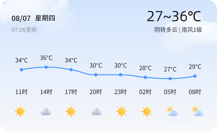 今天是2025年8月7日,星期四,农历润六月十四,潍坊迎来立秋节气。今日天气阴转多云,气温在27℃至36℃之间,南风1级,空气湿度较高,达到89%。空气质量方面,PM2.5指数为33,属于良好级别,市民可以放心户外活动。立秋标志着季节的转换,天气开始由热转凉,昼夜温差逐渐增大。市民需注意及时增减衣物,预防感冒。出行建议早晨和夜间温度较低,建议添衣保暖,白天多云,紫外线较弱,适合户外活动。